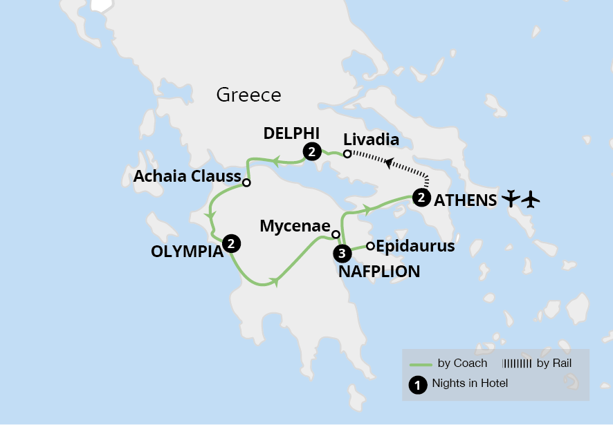 Explore a wealth of historic gems on this journey through Greece and the Peloponnese. Beginning with a two-night stay in Athens, enjoy a guided tour of the magnificent Acropolis, viewing the Parthenon and the jaw-dropping treasures of the museum. Uncover iconic sites overflowing with Greek mythology in Delphi and discover the birthplace of the...