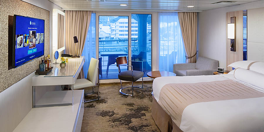 Experience a little extra indulgence with your own private Veranda, where you can soak up the sea air and panoramic views. Inside, relax with all the thoughtful touches included in every stateroom, ensuring comfort and relaxation throughout.