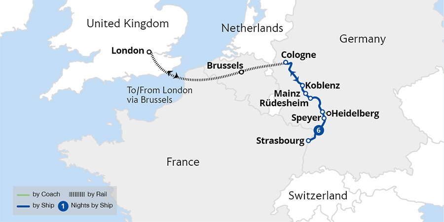 - Soak up the festive atmosphere in Speyer, Rüdesheim, Heidelberg and Strasbourg