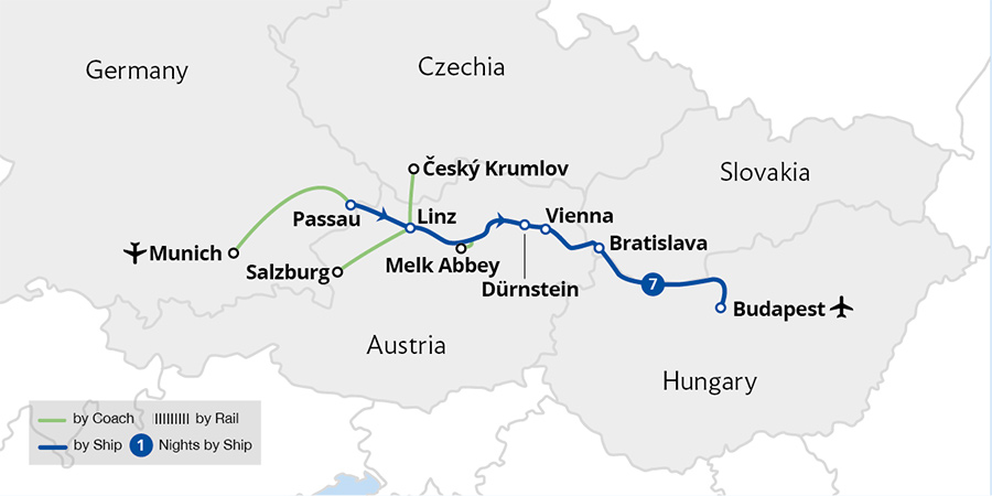 Fly to Munich for a luxurious cruise down the blue Danube, uncovering the beauty and culture of this scenic river. Delve into the rich history of the Ottoman and Habsburg empires and wander among inspiring architecture in Budapest and Vienna. Sail the beautiful Wachau Valley, visiting Dürnstein and historic Melk Abbey. Arriving in the...