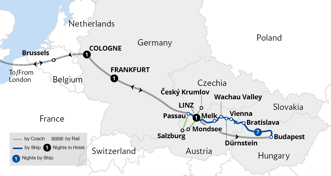 Enjoy a leisurely cruise through four countries and three capital cities, basking in beautiful river scenery all the way. Sail from the German town of Passau through the Austrian wine-growing region of the Wachau Valley, admiring picturesque Dürnstein and Melk Abbey enroute. After exploring imperial Vienna, the captivating Hungarian capital of...