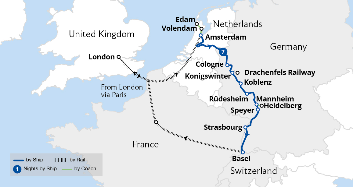 Experience the breathtaking beauty of the Netherlands to Switzerland on a luxury river cruise. Sail through four countries, admiring stunning forested valleys, charming half-timbered towns and historic cities lining the picturesque banks of this incredible river. Marvel at the spectacular scenery of the Rhine Gorge, a UNESCO World Heritage ...