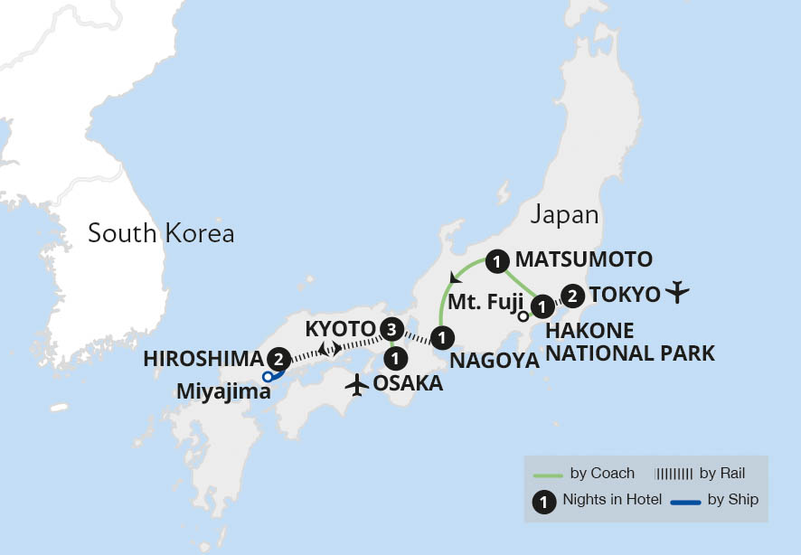 Journeying on the world-famous bullet trains, visit Hiroshima's Peace Memorial and Kyoto's ornate temples, before concluding this memorable tour in Osaka.